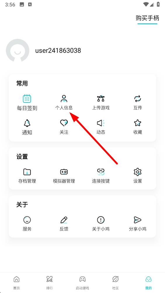 2、進(jìn)入我的頁面常用板塊里找到個人信息的選項,點擊它即可進(jìn)入個人信息設(shè)置界面。