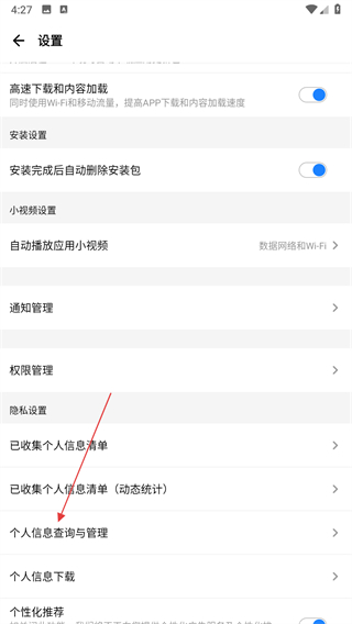 2、進(jìn)入設(shè)置頁面后,點(diǎn)擊個(gè)人信息查詢與管理。