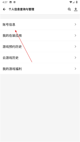 3、在個(gè)人信息查詢與管理頁面,點(diǎn)擊賬號(hào)信息。