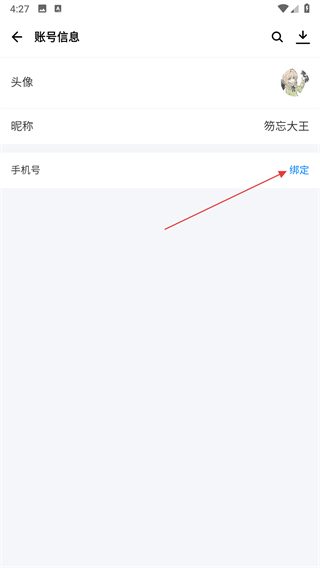 4、進(jìn)入賬號(hào)信息頁面,點(diǎn)擊手機(jī)號(hào)右側(cè)的綁定。