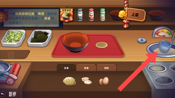 2、豐富烹飪體驗(yàn):擁有多種烹飪道具和食材,且擺放合理,玩家可根據(jù)顧客需求,通過調(diào)配湯底、挑選面條、搭配配料等制作出拉面。