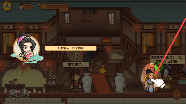 2、游戲內(nèi)出現(xiàn)客人時,輕按客人進(jìn)行打招呼,開啟服務(wù)流程。