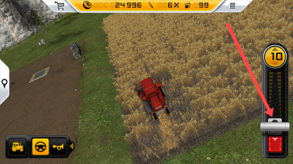 3、在操控收割機的時后,通過右側(cè)滑塊來進行調(diào)節(jié)收割機的速度,合理控制確保高效收割。