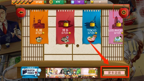 1、因為游戲整體顯示的繁體字,如果對其不是很適應的話,可以點擊關卡右上角的齒輪按鈕進入設置界面。