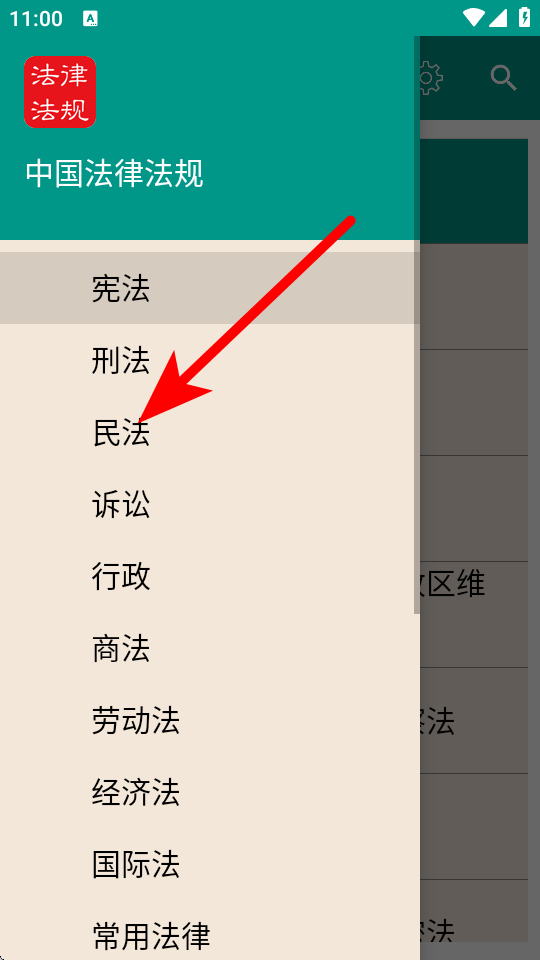 2、在法律分類列表中,點(diǎn)擊民法選項(xiàng),進(jìn)入民法分類頁面。