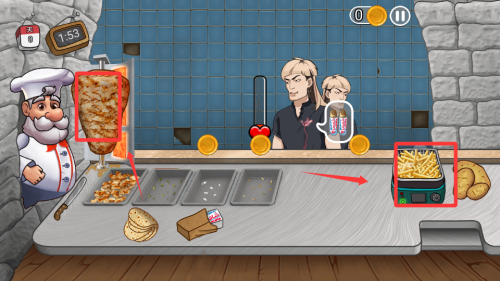 注意觀察顧客頭頂?shù)臍馀萏崾?,快速判斷他們想點(diǎn)的沙威瑪種類,優(yōu)先處理等待時(shí)間較長的訂單。