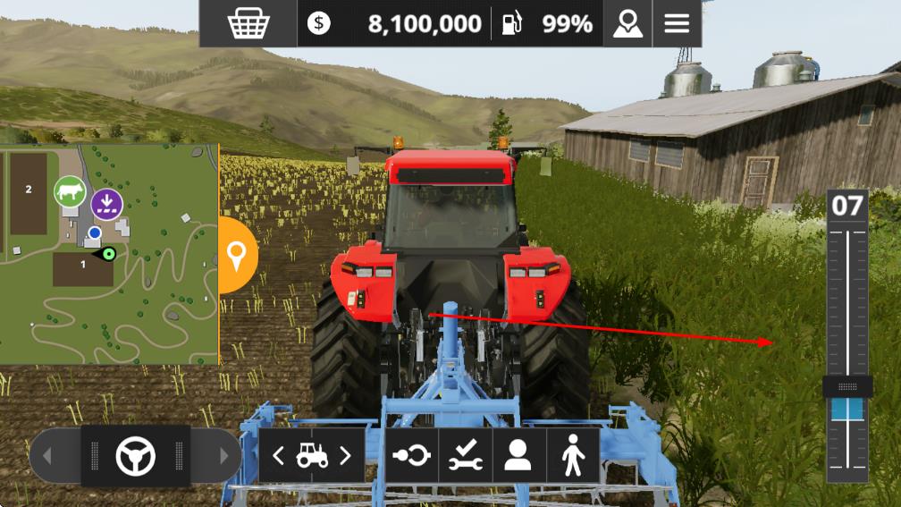 1、進(jìn)入游戲選擇歐洲農(nóng)場場景,開墾土地播種小麥、玉米等作物,點(diǎn)擊農(nóng)機(jī)操作界面控制轉(zhuǎn)向與速度,完成耕地、施肥等步驟。