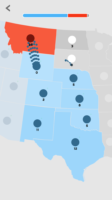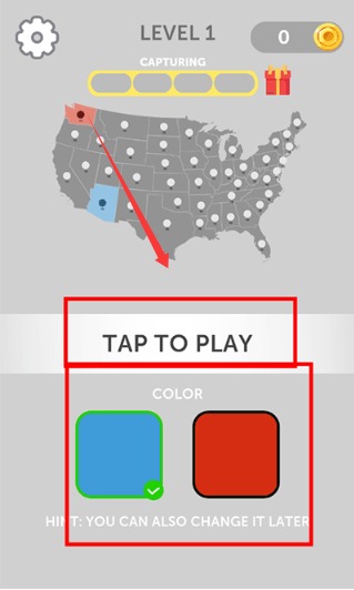 1、進(jìn)入戰(zhàn)局后,需從己方據(jù)點(diǎn)出發(fā),召集小兵向周圍空白區(qū)域擴(kuò)展,用己方代表顏色逐漸占領(lǐng)整張地圖。