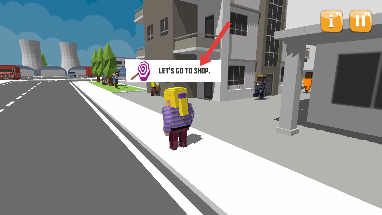 2、在游戲內(nèi)跟隨【LET'S GO TO SHOP】的NPC指引,操控角色向商店方向移動,推進(jìn)任務(wù)。