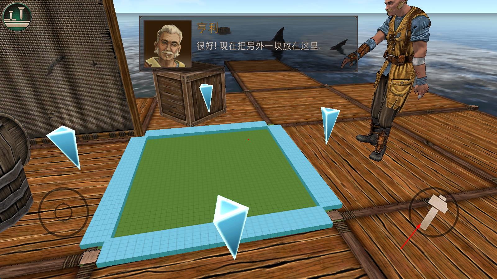 1、初入游戲,用鉤子打撈海面漂浮的木板、塑料等材料,優(yōu)先制作釣魚竿與凈水器,解決食物與飲水問(wèn)題,同時(shí)警惕鯊魚對(duì)木筏的攻擊。