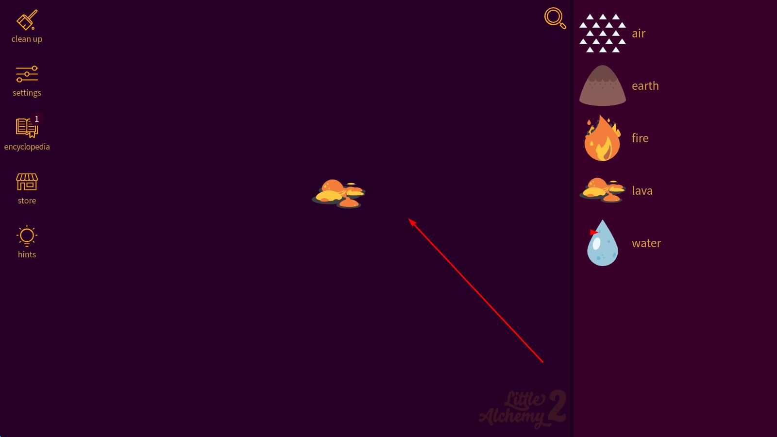 1、進(jìn)入游戲先從基礎(chǔ)元素如空氣、水、火、土開始,通過拖拽兩種元素到一起,嘗試合成基礎(chǔ)物品,如“空氣+火=能量”。