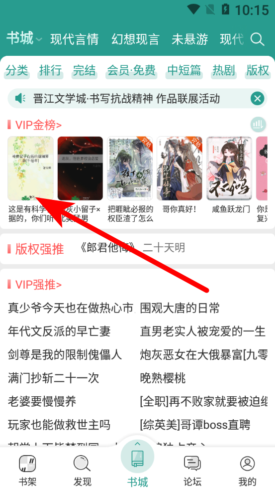 1、在晉江小說(shuō)閱讀書(shū)城頁(yè)面,找到并點(diǎn)擊目標(biāo)小說(shuō),進(jìn)入小說(shuō)詳情界面。