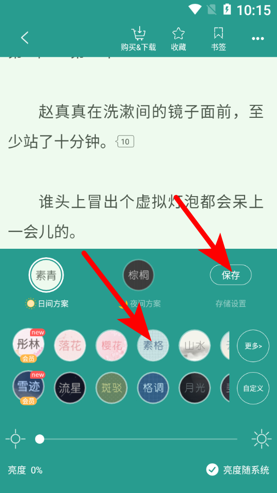 4、選擇喜歡的背景圖后點(diǎn)擊保存按鈕,完成晉江小說(shuō)閱讀背景圖設(shè)置操作。
