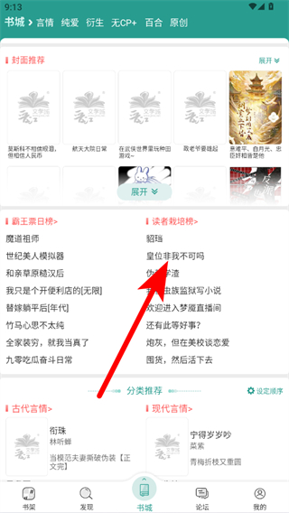 1、在晉江小說(shuō)閱讀APP書(shū)城頁(yè)面,點(diǎn)擊想要查看目錄的小說(shuō),進(jìn)入小說(shuō)詳情頁(yè)面。