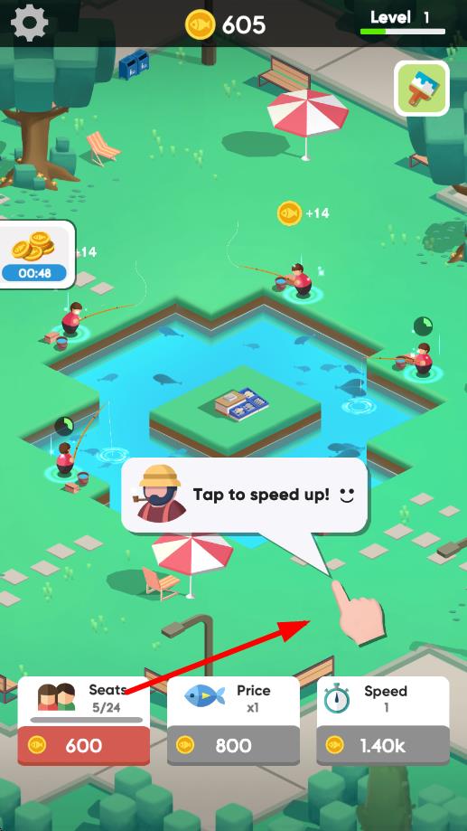 2、用客人釣魚消費(fèi)的金幣升級(jí)設(shè)施,解鎖飼料自動(dòng)投喂機(jī)等設(shè)備,提升魚類培育效率。