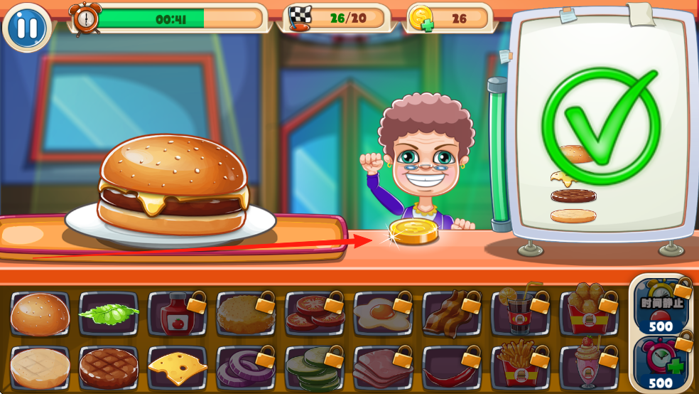 2、合理利用廚房設(shè)備,優(yōu)先升級(jí)高效灶具與冷藏柜,通過連續(xù)完美出餐觸發(fā)顧客好評(píng),快速積累金幣解鎖新菜品。