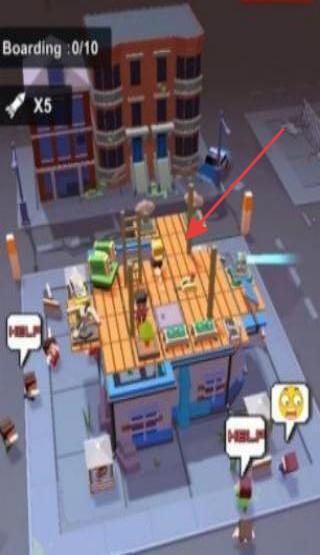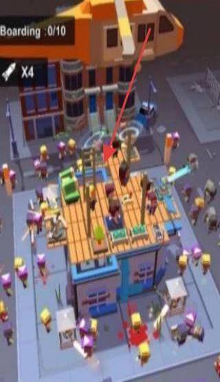 1、基地場景中,引導(dǎo)小人前往直升機旁的建筑,收集人員,達成【Boarding:0/10】的登機目標,為撤離或戰(zhàn)斗儲備人力。