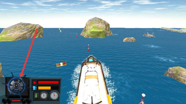 3、駕駛時(shí),用左下角方向盤控制方向,避開礁石,需要按航線駛向目標(biāo)島嶼,完成關(guān)卡任務(wù)。