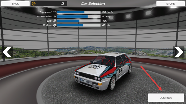 2、選定賽車(chē)后,點(diǎn)擊【CONTINUE】進(jìn)入比賽。