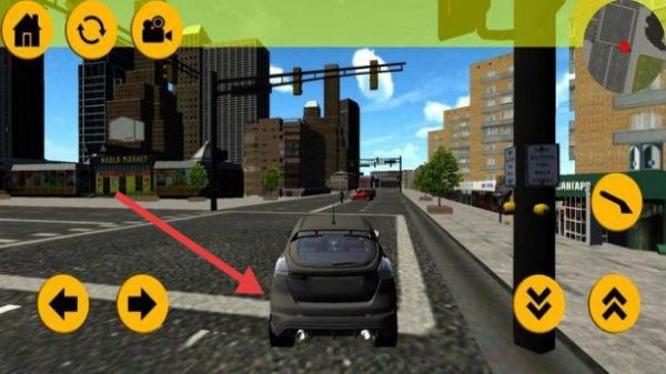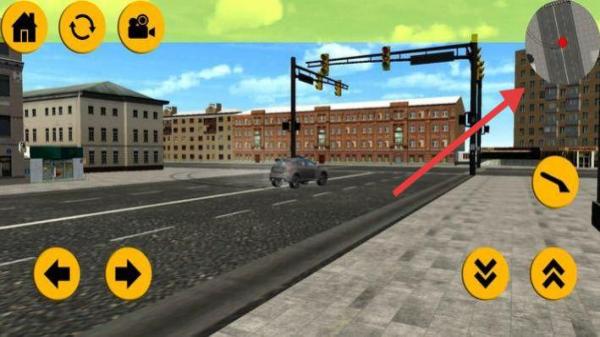 2、關注右上角小地圖,依據(jù)其指引,在城市道路中規(guī)劃行駛路線。