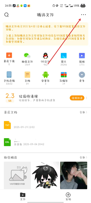 1、打開騰訊文件應(yīng)用,點(diǎn)擊右上角的三點(diǎn)菜單按鈕。