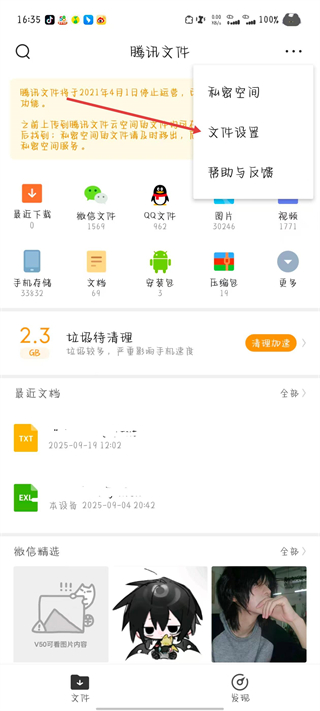 4、微信、qq中接收的所有文件單獨(dú)分類展現(xiàn)