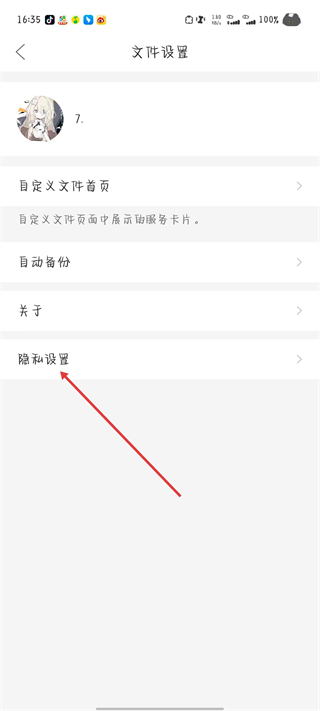 3、進(jìn)入文件設(shè)置頁面后,點(diǎn)擊隱私設(shè)置選項(xiàng)。