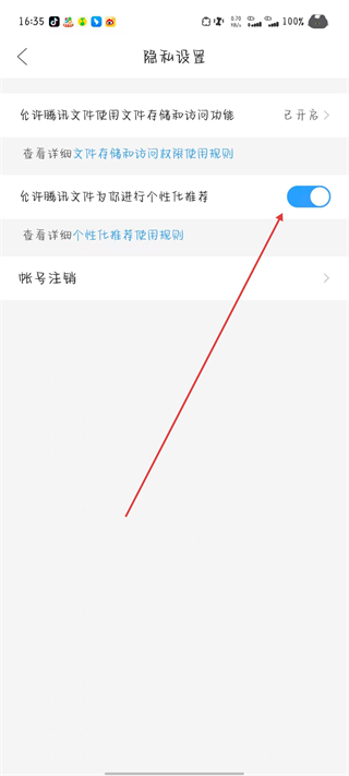 4、在隱私設(shè)置頁面,點(diǎn)擊開關(guān)按鈕,將其關(guān)閉即可。