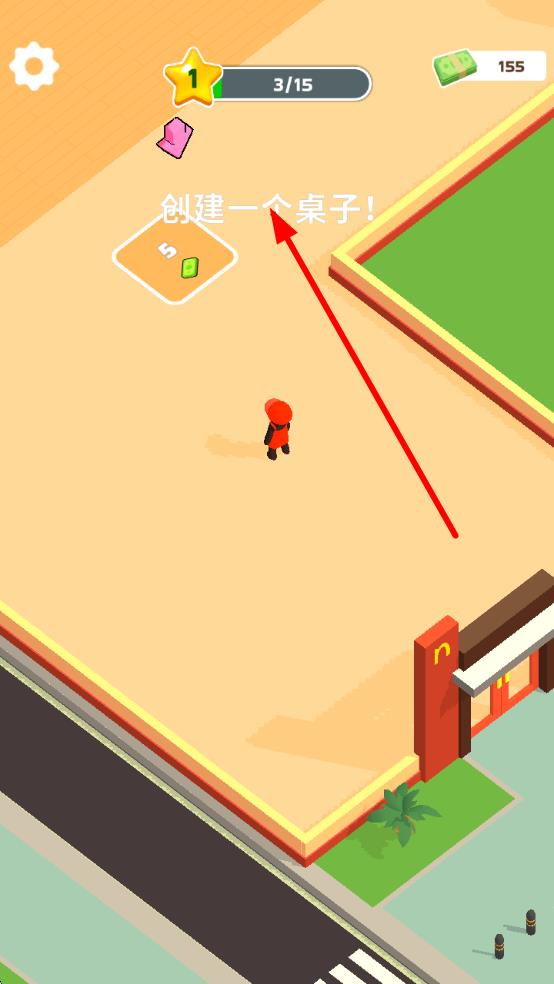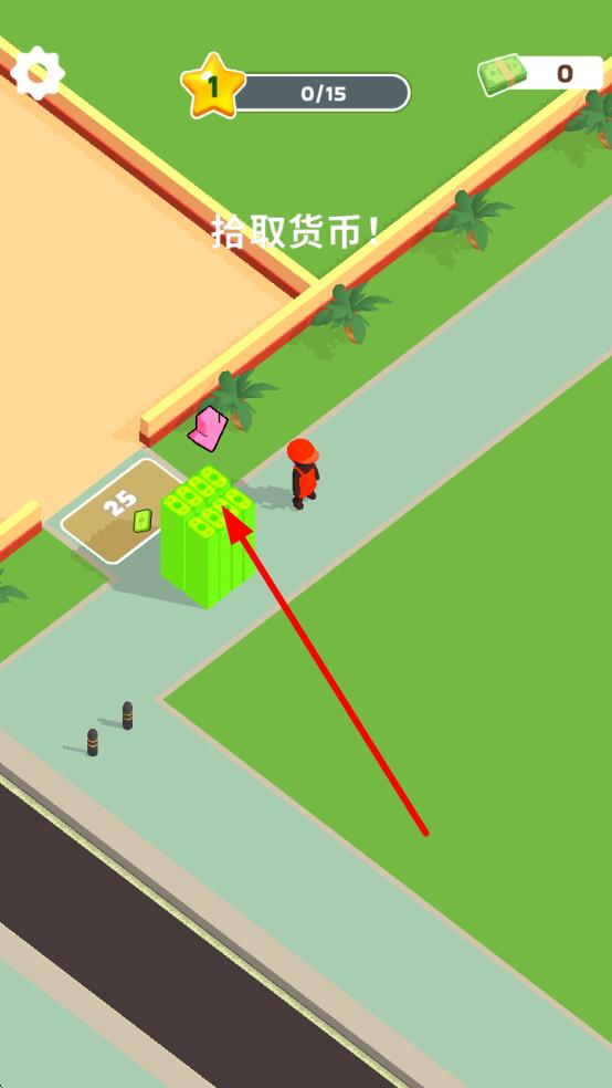 1、進(jìn)入游戲,在初始場景按指引拾取貨幣,積累啟動資源,為飯店經(jīng)營籌備。