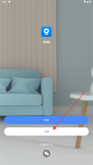 1、啟動v380的應用APP,進入時點擊下方注冊的按鈕。