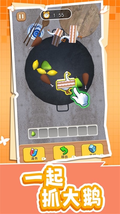 2、創(chuàng)新性融入了物理互動(dòng)機(jī)制,玩家可以自由拖動(dòng)場(chǎng)景中的物品,甚至通過“顛鍋”操作打亂排列順序,為傳統(tǒng)三消玩法增添策略深度。