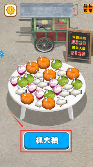 1、點(diǎn)擊藍(lán)色抓大鵝按鈕,開始今日挑戰(zhàn)游戲。