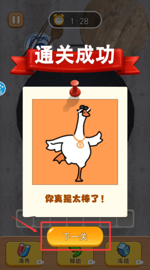 3、點(diǎn)擊紅框下一關(guān)按鈕,繼續(xù)挑戰(zhàn)新關(guān)卡。