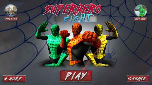 1、點(diǎn)擊主界面“PLAY”按鈕,進(jìn)入模式選擇,開啟超級英雄格斗之旅。