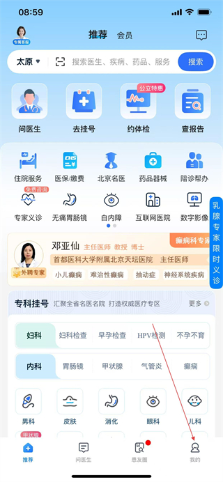 1、打開健康山西APP,點(diǎn)擊底部導(dǎo)航欄我的選項(xiàng)。