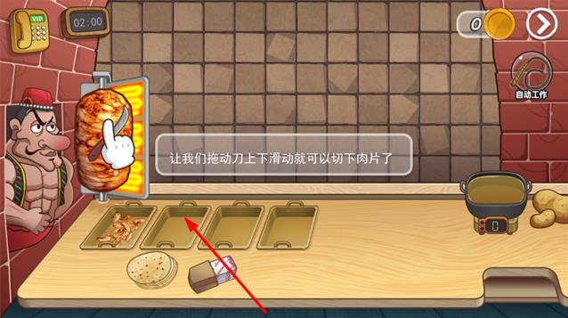 2、拖動(dòng)刀上下滑,切肉片,搭配餅與配料,制作沙威瑪,滿(mǎn)足顧客。