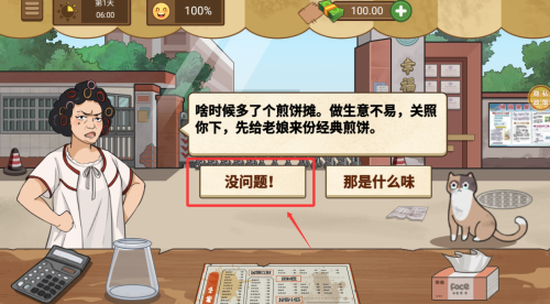 3、點(diǎn)擊沒問題按鈕,完成顧客煎餅訂單。
