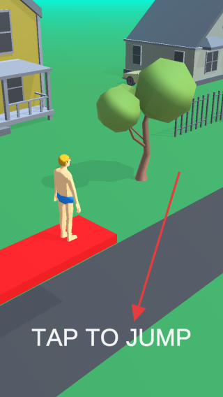 1、在初始界面,點(diǎn)擊【TAP TO JUMP】,讓角色從紅色平臺(tái)起跳,開啟跳躍挑戰(zhàn)。