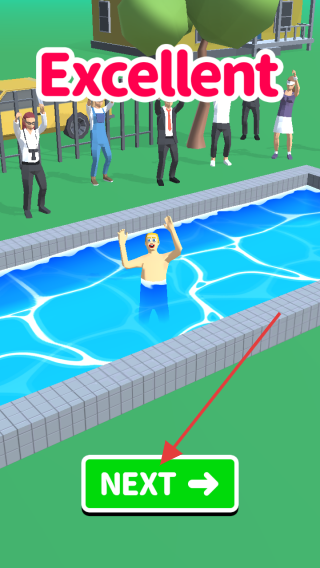 3、成功落入泳池,出現(xiàn)【Excellent】評(píng)價(jià)后,點(diǎn)擊【NEXT】,進(jìn)入下一關(guān),繼續(xù)跳躍闖關(guān)。