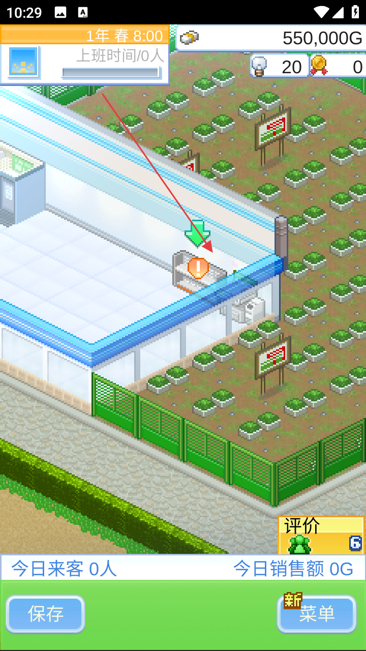 1、在主界面點擊“開始游戲”,開啟便利店經營之旅,規(guī)劃店鋪布局與商品進貨。