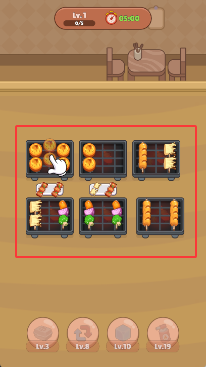 1、進入新關(guān)卡先觀察布局,根據(jù)食材分布規(guī)劃燒烤方案,標(biāo)記關(guān)鍵目標(biāo)和特殊區(qū)域。
