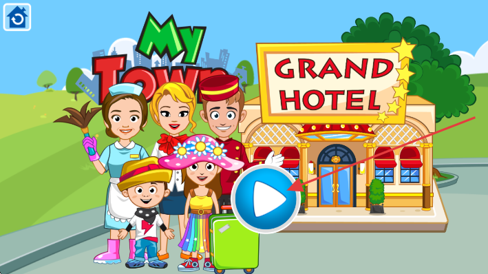 1、進(jìn)入【My Town Grand Hotel】游戲,點擊藍(lán)色播放鍵,開啟酒店經(jīng)營冒險之旅。