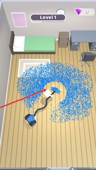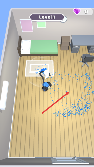 2、吸塵清理:讓小人靠近藍(lán)色灰塵堆,吸塵器自動(dòng)吸納灰塵,持續(xù)清理直至房間內(nèi)灰塵全部吸完,完成當(dāng)前關(guān)卡目標(biāo)。