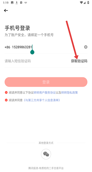 3、在輸入好手機號后,點擊“獲取驗證碼”。