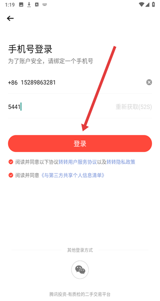2、點擊“立即登錄”,進入手機號登錄界面。