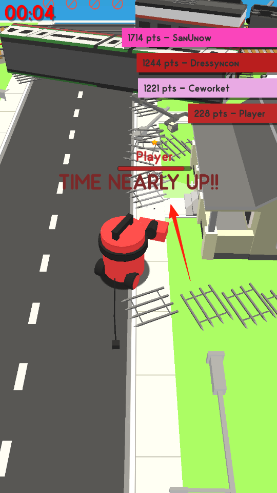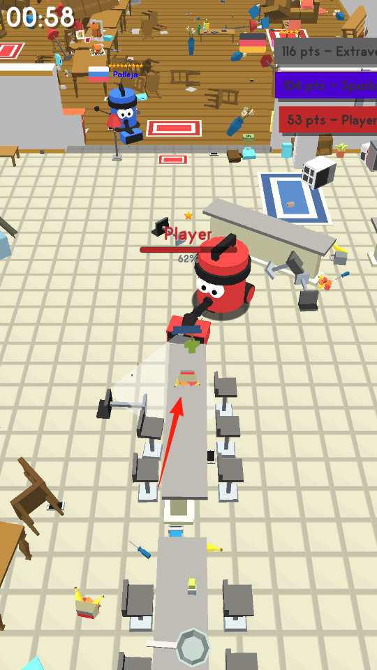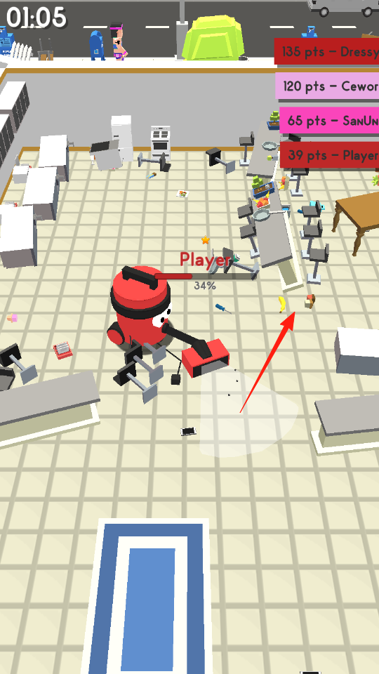 2、在場(chǎng)景中,留意其他吸塵器(如藍(lán)色),避免碰撞,同時(shí)高效清理垃圾,提升積分排名(右側(cè)顯示分?jǐn)?shù))。