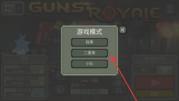 2、在游戲模式選擇界面,根據(jù)自身喜好點擊二重奏等模式選項。不同模式有不同玩法和組隊機制,如獨奏適合單人挑戰(zhàn),二重奏可雙人配合。