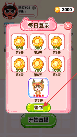 1、在游戲界面打開每日登錄面板,點擊簽到按鈕,可按天數(shù)依次領取金幣等獎勵,連續(xù)簽到7天能獲圣誕麋鹿等特殊獎勵,積累游戲資源。