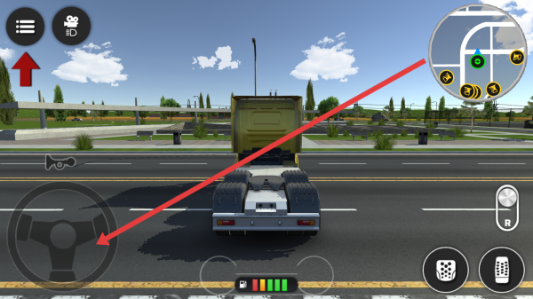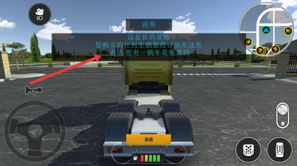 2、用左下角方向盤、右側(cè)按鍵操控卡車,跟隨地圖標(biāo)記右上角小地圖,前往任務(wù)點(diǎn)工地。