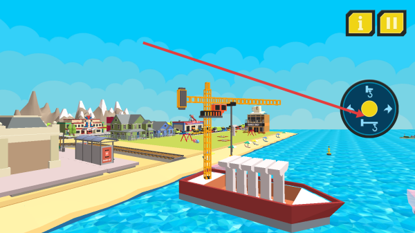 2、利用右側(cè)建造工具如起重機操控,運輸、放置軌道部件,連接陸地與水上路段。